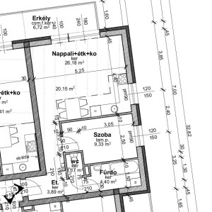 44,96 m2 alapterületű, erkélye 6,72 m2